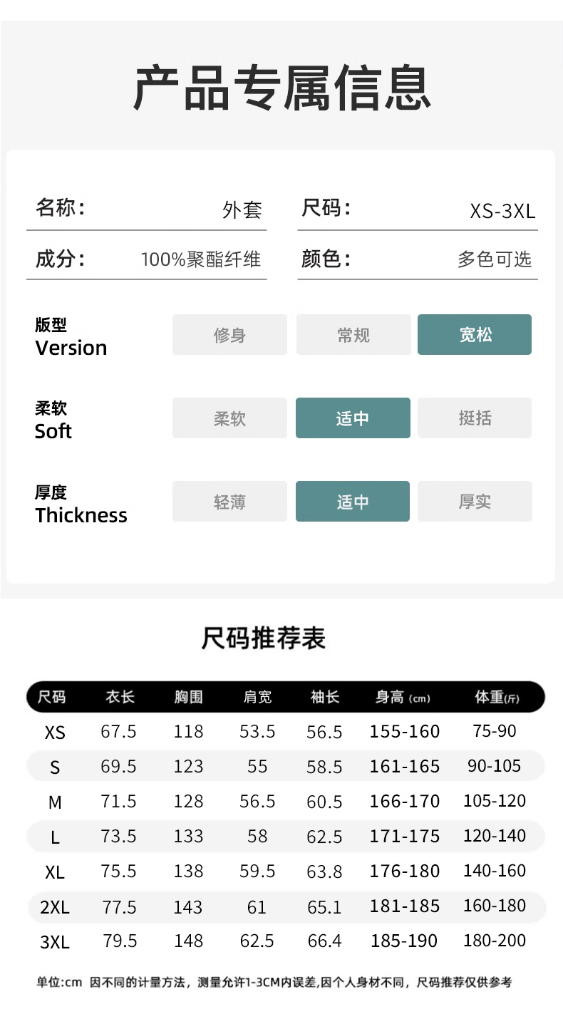 | 尺寸 | XS、S、M、L、XL、2XL、3XL |